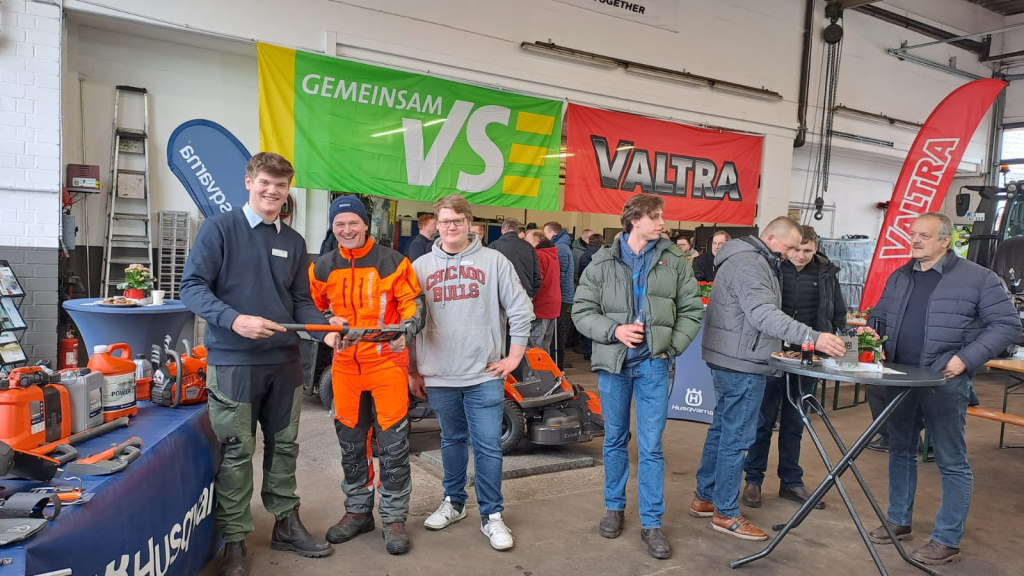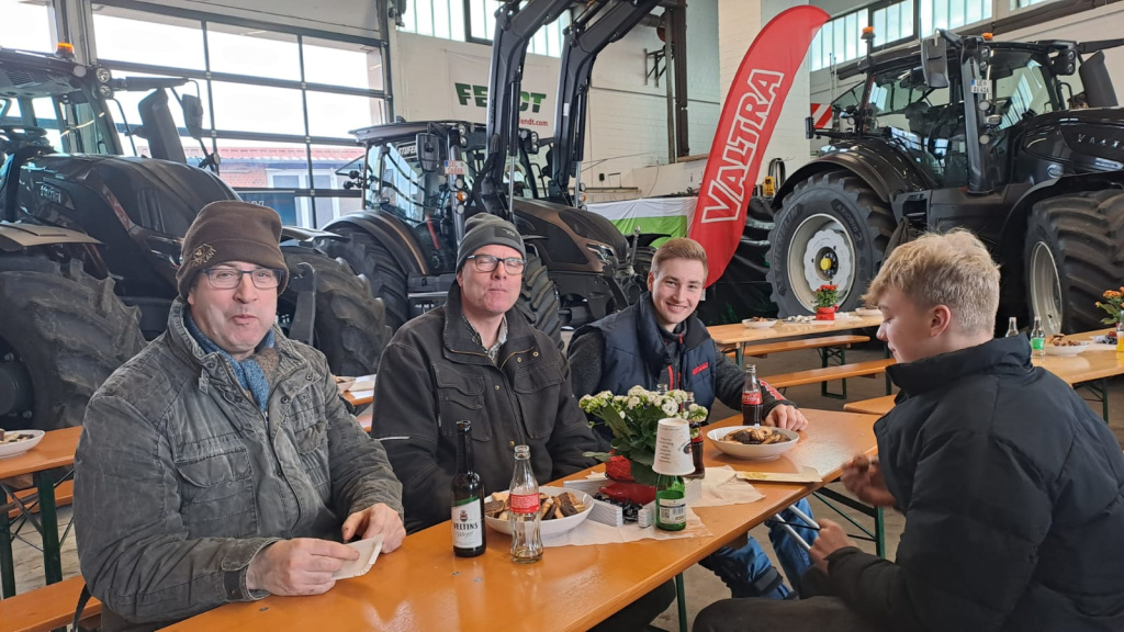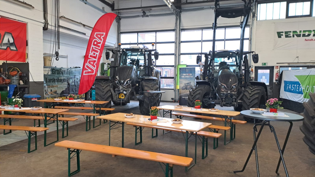 Ein weiteres Schwerpunktthema waren die Neuheiten bei VALTRA. Mehrere Schlepper konnten genauer unter die Lupe genommen werden. Etwa 150 Besucher nutzten am Samstag die Gelegenheit bei Getränken und Bockwurst ins Gespräch zu kommen und sich über Neuheiten zu informieren. Auch die Firmen Fasterholt und Düvelsdorf präsentierten sich vor Ort.