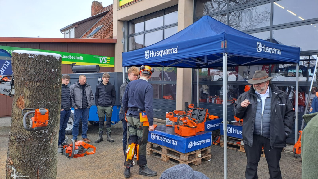 Thematisch stellten wir unser umfangreiches Sortiment aus dem Hause Husqvarna vor. Eindrucksvoll wurden verschiedene Motorsägen-Modelle vorgestellt und natürlich konnten die Maschinen auch ausprobiert werden.